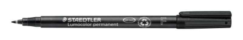 Rotulador universal para casi todas las superficies. Adecuado para retroproyección. También adecuado para usar sobre CD/DVD. No emborrona y es resistente al agua sobre casi todas las superficies. Seca en segundos, ideal para usuarios zurdos